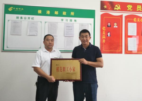 9月13日下午,九江市分公司副總經(jīng)理、工會(huì)主席喻剛,工會(huì)副主席余茜一行,來到瑞昌市分公司橫港郵政所,為該所榮獲“江西省郵政系統(tǒng)模范職工小家”舉行了授牌儀式。瑞昌分公司總經(jīng)理江訓(xùn)斌,副總經(jīng)理、工會(huì)主席姜敏出席授牌儀式。