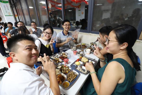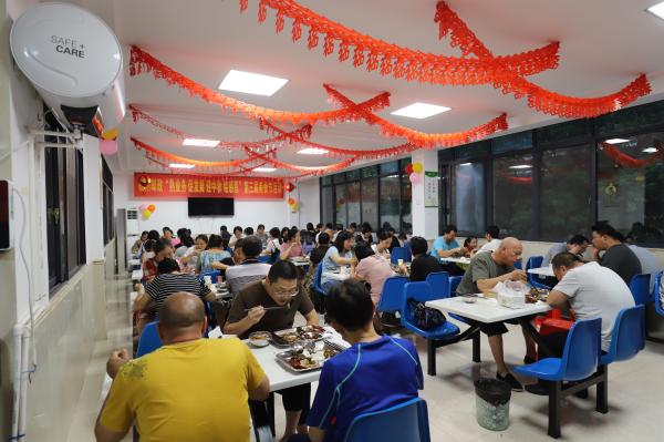 下午下班后,員工們成群結(jié)隊(duì),滿面笑容地走向食堂。食堂張燈結(jié)彩,人聲鼎沸,好不熱鬧!琳瑯滿目的美食令人應(yīng)接不暇:有瑞金牛肉湯、石城芋餃、寧都肉丸等贛南特色美食;有滋味小龍蝦、鹵味翅膀腳、麻辣香鍋、榴蓮酥、花生豆粑、芋包、薯包等香酥系列美食;有薏米芡實(shí)粥、八寶粥、奶黃包等養(yǎng)生美食;有圣女果、香蕉、水果黃瓜、冬棗等水果美食;還有各種飲料……美食品種豐富多彩,讓人眼花繚亂;誘人的香味撲鼻而來(lái),讓人滿口生津。員工們喜氣洋洋,吃著笑著聊著,沉浸在美味的歡樂(lè)之中。