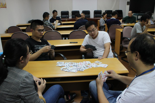 為活躍氣氛,歡慶佳節(jié),國(guó)慶節(jié)前省信息技術(shù)局工會(huì)組織開展撲克牌“摜蛋”比賽。競(jìng)技撲克比賽是一項(xiàng)不分性別、老少皆宜的活動(dòng),但卻深深反應(yīng)出團(tuán)結(jié)協(xié)作、默契程度,也深受信息局職工的歡迎。在本次比賽進(jìn)程中現(xiàn)場(chǎng)氣氛十分活躍,選手們密切配合、沉著應(yīng)戰(zhàn),對(duì)戰(zhàn)雙方比牌技,比智慧,賽成績(jī),賽友誼。8組選手展開激烈角逐,比分你追我趕,比賽膠著有趣,打出了不少精彩對(duì)局,大家切磋牌技的同時(shí),加強(qiáng)了交流,增進(jìn)了友誼。