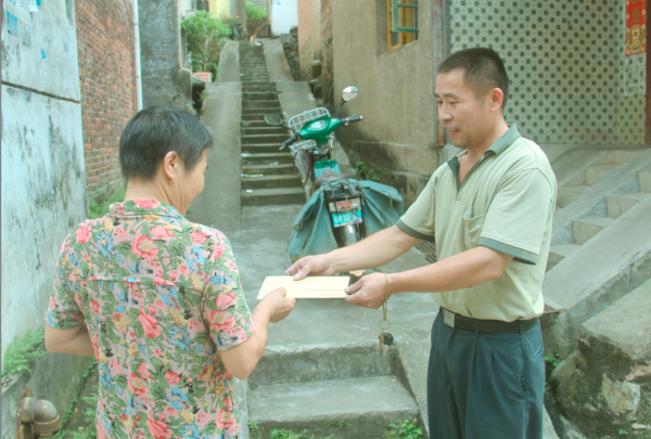 陳久富說(shuō):“我熱愛(ài)郵政事業(yè),更愛(ài)投遞工作,為用戶服務(wù),讓用戶滿意是我的心愿?!痹谒耐哆f工作中,他始終把用戶滿意不滿意、高興不高興作為工作的出發(fā)點(diǎn)和落腳點(diǎn)。投遞是個(gè)特殊的服務(wù)窗口,為了維護(hù)好“人民郵政為人民”這個(gè)形象,無(wú)論刮風(fēng)下雨,無(wú)論烈日炎炎,無(wú)論冰天雪地,他都及時(shí)準(zhǔn)確地將一份份報(bào)紙,一封封信件,一個(gè)個(gè)包裹送到每位用戶的手中,用他的實(shí)際行動(dòng)讓用戶對(duì)郵政有一種親切感、信任感。
