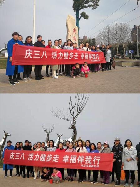 為慶?!叭恕眿D女節(jié),豐富廣大女職工的業(yè)余生活,堅(jiān)持快樂工作,健康生活的理念,全面提升職工身體素質(zhì),打造“文明、健康、快樂”的企業(yè)氛圍,展現(xiàn)企業(yè)良好精神風(fēng)貌,今天下午,許昌市分公司組織女職工齊聚許昌鹿鳴湖畔,共同參加“慶三八活力健步走 幸福伴我行”活動。