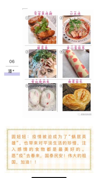 家的味道,愛的溫度,平淡的柴米油鹽成立珍貴的日常。居家也是在為疫情防控做貢獻(xiàn),隔離了病毒,卻沒有隔離愛。謳歌真善美,傳播正能量,機(jī)要巾幗希望與每一位熱愛生活的人一起,用一道道色香味俱全的美食,迎接祖國(guó)山河無恙、繁花似錦的歸來。(福建郵政工會(huì))