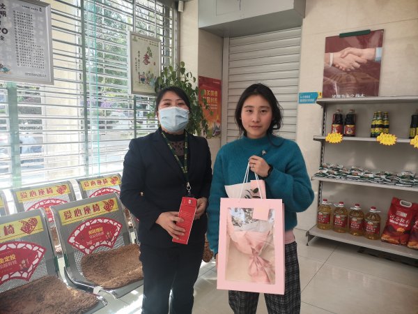 在3月8日國際婦女節(jié)這天,郵儲銀行翠峰路支行向一位特殊的女客戶送上一份驚喜,表達了郵政人員的誠摯情誼與節(jié)日祝福。