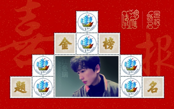 金榜提名郵票該版式以“夢想啟航”為主圖,6枚版特殊版式,成品尺寸為270x180mm。個性化郵票整體呈階梯形狀、不斷上升,象征莘莘學子金榜題名后夢想啟航、不斷攀登人生高峰。邊飾中以紅色和金色表達喜慶祝賀之意。邊飾上暗紋字為“報喜”與右上角的“金榜題名”印章,呼應金榜題名主題,更加突出的表達對于莘莘學子最樸素美好的祝愿。 目前有8位學子現(xiàn)場收到一套金榜提名個性化郵冊禮物,感到自己的肖像躍上個性化郵票這一“方寸世界”里,并且具有極高的收藏價值和紀念意義,紛紛表達要在大學好好學習,將來為社會做出貢獻。