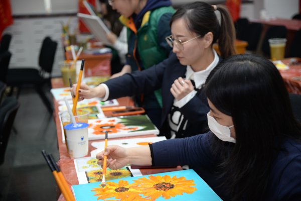 3月1日,區(qū)分公司工會就為全局各個(gè)女職工每人準(zhǔn)備了一套波西米亞風(fēng)的餐具套裝,大家拿到手中后滿心歡喜。3月4日,伴隨午后陽光的來臨,50多名來自各個(gè)崗位的女工齊聚一堂,首先聽取了來自呼家樓第二社區(qū)衛(wèi)生服務(wù)中心的中醫(yī)專家講授女性健康方面的知識和身體保健方法,大家在一起跟隨老師做了養(yǎng)生操,記下了調(diào)理藥方;緊接著美術(shù)老師帶了油畫課,現(xiàn)場手把手教大家畫向日葵油畫,各位女職工沉浸其中,并發(fā)揮自己的想象,創(chuàng)作了一幅又一幅美妙絕倫的向日葵。