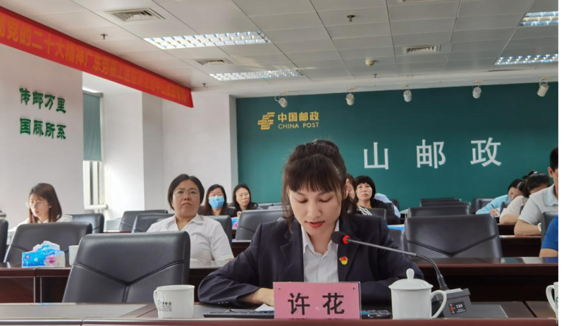 為深入學(xué)習(xí)宣傳貫徹黨的二十大精神,結(jié)合省郵政工會、女職委勞模學(xué)習(xí)相關(guān)工作要求及職工代表培訓(xùn)的安排,中山市分公司通過現(xiàn)場宣講和線上會議相結(jié)合的形式組織開展“奮進(jìn)新征程,巾幗展芳華”南粵巾幗勞模宣講活動,市分公司黨委、工會、女職委等委員干事、職工代表等98名員工參加活動。同時中山市郵政工會將活動資源共享到其他兄弟單位,邀請省培訓(xùn)中心和東莞市分公司的員工通過線上會議收聽宣講。