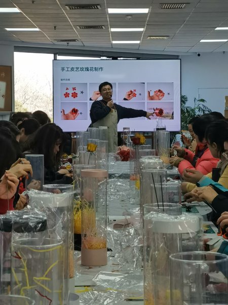 3月6日海淀區(qū)分公司開展了“相約三八 擁抱春天”系列活動之“皮藝之美——皮革玫瑰花制作活動”,全區(qū)來自各崗位近40名女職工參加了活動。