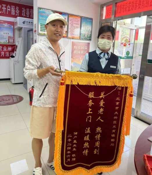 6月10日,大興區(qū)青云店郵政支局采育支行迎來了一位特別的客人——客戶孟先生,他手持寫有“關愛老人 熱情周到 服務上門 溫暖熱情”一面錦旗,送到綜合柜員宋春榮手中,對宋春榮及整個支行團隊熱情周到的服務表示高度贊揚。