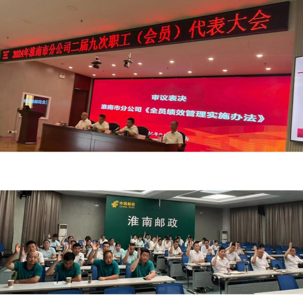 2024年8月28日,淮南市分公司召開第二屆第九次職工(會(huì)員)代表大會(huì),會(huì)議審議表決了《淮南市郵政分公司全員績效考核辦法》(以下簡稱辦法)。 《辦法》對(duì)市分公司員工工作質(zhì)效的量化考核方法,考核結(jié)果運(yùn)用在員工年終績效獎(jiǎng)勵(lì)中,是涉及員工切身利益的大事件。 為保障會(huì)議順利開展,市郵政工會(huì)提前將會(huì)議資料通過郵E聯(lián)群發(fā)給市分公司二屆職工代表,要求職工代表認(rèn)真踐行職責(zé),廣泛征求職工意見。 預(yù)備會(huì)議對(duì)代表資格審查進(jìn)行審查、人數(shù)清點(diǎn)并通過會(huì)議議程;正式會(huì)議,市分公司人力資源部經(jīng)理對(duì)《辦法》進(jìn)行了詳細(xì)解讀并對(duì)代表們提出的問題進(jìn)行了細(xì)致解答,經(jīng)審議,代表們舉手表決全票通過了《辦法》。陶慶余主席做會(huì)議小結(jié),并宣讀決議。 經(jīng)職工(會(huì)員)代表表決通過的《辦法》將通過OA印發(fā),自發(fā)布之日起生效。