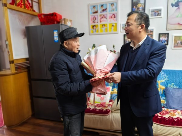 許悅林一行首先帶著鮮花和慰問品,來到75歲退休省勞模徐仲華家中慰問,親切地與徐仲華嘮家常,詳細詢問了他的身體和家庭等情況。徐仲華說:“省、市分公司對退休員工十分關(guān)愛,養(yǎng)老、醫(yī)療都有保障,自己十分滿意,也十分感謝!”許悅林指出:“老同志為企業(yè)做出了貢獻,企業(yè)要在政策范圍內(nèi)力所能及地予以更多人文關(guān)懷和關(guān)愛。”同時,他叮囑徐仲華一定要保養(yǎng)好身體,并送上慰問金,表達了省分公司黨委對退休勞模的濃濃關(guān)心。