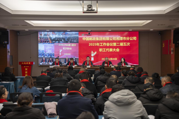 2月20日,湘潭郵政組織召開2025年工作會議暨二屆五次職代會,本次會議以現場加電視電話會議形式召開,市分公司領導班子、全市四級副以上干部、職工代表及獲獎人員等參加會議。
