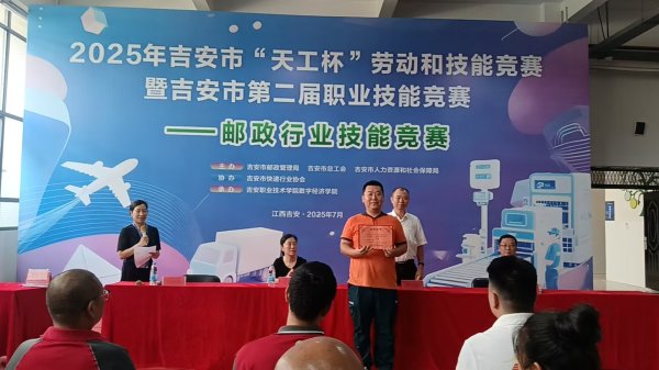 7月8日,2025年江西吉安市“天工杯”勞動和技能競賽暨吉安市第二屆職業(yè)技能競賽郵政行業(yè)技能競賽在吉安職業(yè)技術(shù)學院圓滿落幕。本次竟賽共有個10代表隊47名選手參賽,吉安郵政代表隊憑借扎實的專業(yè)功底與出色的臨場發(fā)揮,在競賽中勇創(chuàng)佳績,包攬一、二等獎。