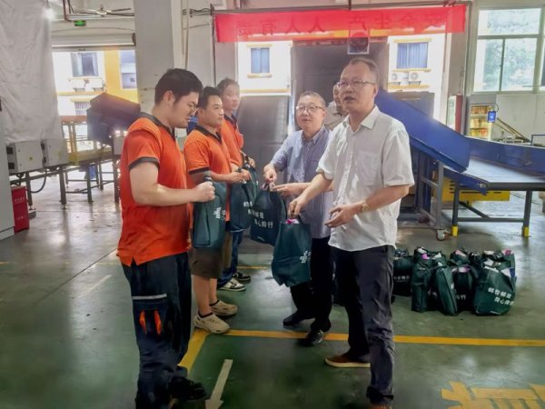 7月15日,杭州市分公司紀(jì)委書記、副總經(jīng)理陳法華帶隊(duì)前往余杭倉前攬投部,為奮戰(zhàn)在高溫一線的快遞員工送去組織的關(guān)懷和防暑降溫物資。