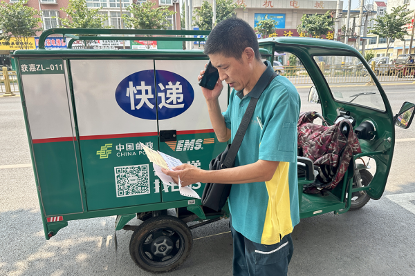 朱世軍已從事投遞工作34年,是同事們公認(rèn)的“老大哥”。6月30日上午,他像往常一樣出班投遞。騎行至城關(guān)鎮(zhèn)老岳莊村橋頭附近,朱世軍看到一個(gè)用塑料袋捆扎,包裝完好的快遞靜靜地躺在路邊。強(qiáng)烈的職業(yè)責(zé)任心驅(qū)使他趕緊下車撿起包裹查看,他發(fā)現(xiàn)包裹上貼有某通快遞的面單,收件人是獲嘉縣居民王女士?!皝G包裹的人肯定很著急,得趕緊聯(lián)系失主?!背鲇诼殬I(yè)本能,朱世軍首先想到的是如何找到收件人,但棘手的是包裹使用了隱私面單,收件人電話號(hào)碼被部分隱藏了。