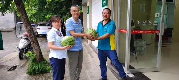 為確保活動(dòng)覆蓋到每一位高溫作業(yè)人員,南川郵政領(lǐng)導(dǎo)班子分三隊(duì)奔赴一線,為高溫酷暑下堅(jiān)守崗位的一線員工送去西瓜、礦泉水等防暑降溫物品。同時(shí),南川郵政工會(huì)還特別關(guān)注戶外勞動(dòng)者的需求,為“郵愛(ài)驛站”送去西瓜和礦泉水,確保戶外勞動(dòng)者在驛站能夠清涼度夏。