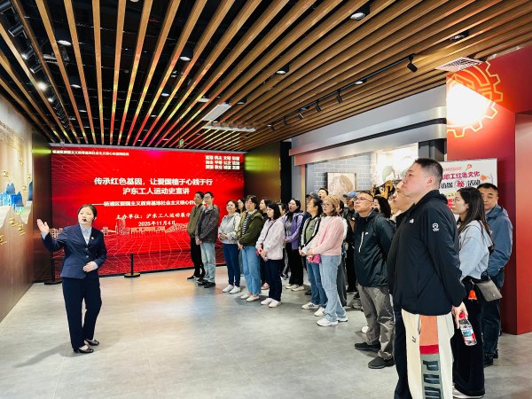上午,在平?jīng)雎?500號(hào)滬東工人運(yùn)動(dòng)展示館,工會(huì)干部們沿著“歷史長(zhǎng)河墻”緩步前行,從1919年楊樹浦紗廠工人罷工的黑白照片,到1927年第三次武裝起義留下的“人壽里”石匾,再到五卅運(yùn)動(dòng)中滬東工人高舉橫幅的復(fù)原場(chǎng)景,一段段血與火的工運(yùn)史詩讓大家駐足凝視,紅色記憶變得可觸可感。面對(duì)“時(shí)代楷模”展區(qū)充分激發(fā)了大家向“咱們工人有力量”的奮斗基因致敬,精神上再次補(bǔ)鈣。