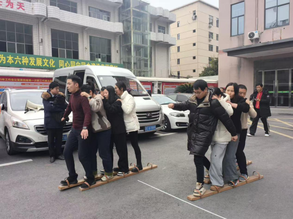 “步步為贏接力賽”中,隊(duì)員們腳綁協(xié)力道具,喊著整齊口號(hào)穩(wěn)步前行,交接瞬間的眼神交匯,傳遞著信任與力量,賽道兩旁的加油聲此起彼伏。