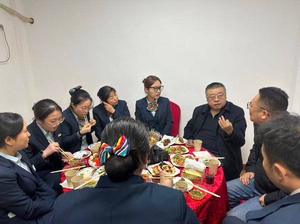 在農(nóng)村網(wǎng)點(diǎn)鳴犢支局職工小家,胡康總經(jīng)理一行察看了職工小家的宿舍和后院,著重了解農(nóng)村支局網(wǎng)點(diǎn)員工生活保障情況。在小家食堂里,胡康總經(jīng)理和史增龍副總經(jīng)理帶來了豐富的食材和飲料,為支局的職工準(zhǔn)備了熱氣騰騰的火鍋。席間和職工共進(jìn)午餐深入交流日常工作和生活情況、共賀新春。胡康總經(jīng)理向辛勤堅(jiān)守崗位的一線員工致以誠(chéng)摯的問候,借紅火的火鍋,寄望支局發(fā)展和職工的生活都蒸蒸日上、更上一層樓。