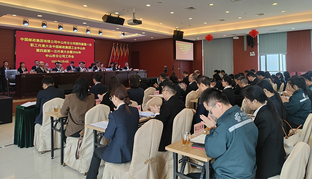 中山市分公司2026年工作會暨第四屆第一次職工代表大會、第四屆第一次代表大會隆重召開。全市郵政系統(tǒng)各單位99名代表齊聚一堂,共繪高質(zhì)量發(fā)展新藍圖,為“十五五”良好開局凝心聚力。